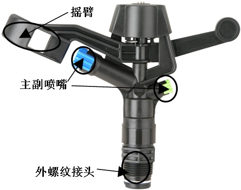 1. 摇臂、转轴,保证喷头运转平稳,震动小,更耐化肥和农药腐蚀。